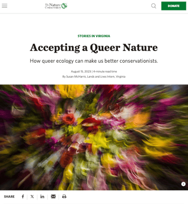 In addition to managing and publishing inclusive articles and interviews on nature.org, I developed the strategy for and worked with the creative and photography teams to select images and assets that were reflective of nature's pride and engaging on our social media channels.